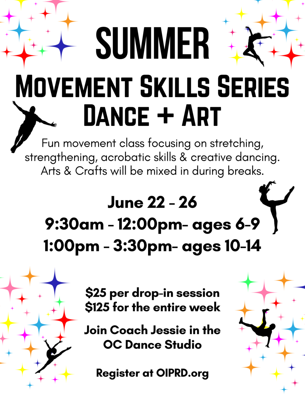 We are running a half-day summer camp option for the first week of summer break, June 22-26. The 2.5 hour session will have dance, gymnastics and crafting. It will take place at the OC Dance Studio. It is $25 per day so you can choose how many of the days you’d like to join in. Hope to see you there! Financial assistance is available.