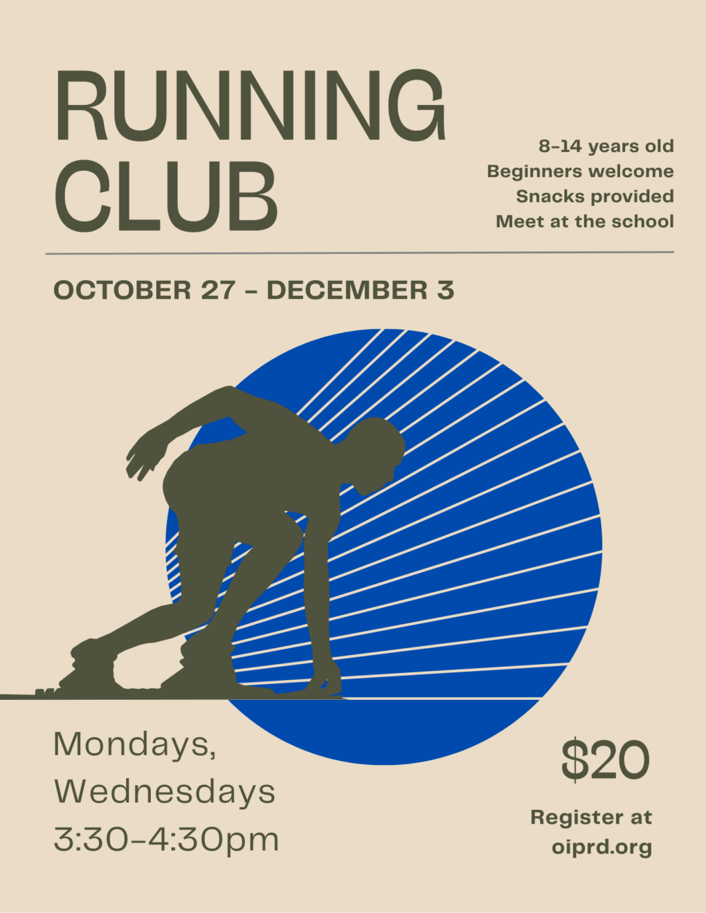 Running Club is back! Coach Mike Kulper will host these Monday and Wednesday sessions. Runners will meet at the elementary school covered area at 3:30pm, to stretch and then RUN! Snacks provided at the end. Register here